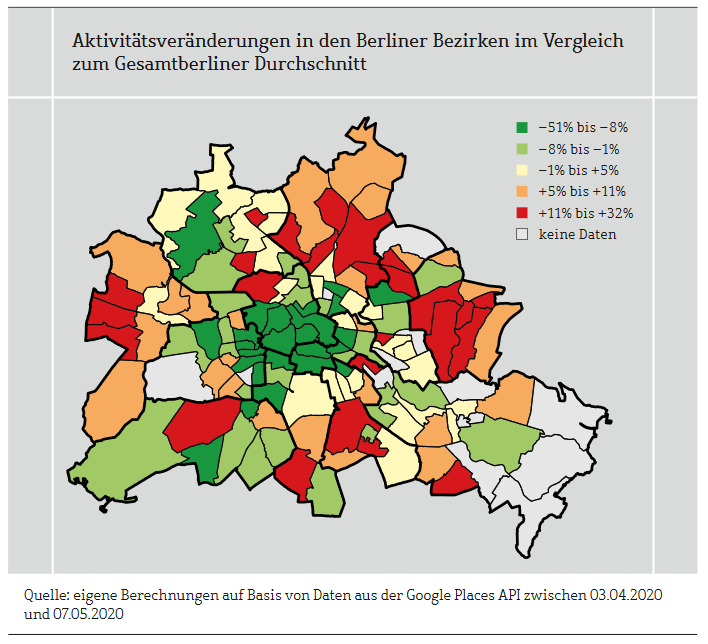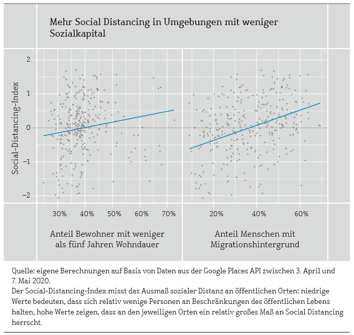 Anonymous trace data from Google Maps can be used to analyze behavioral changes during the Coronavirus lockdown. Data from Berlin collected between early April and early May contradict the hypothesis that social distancing is primarily an instance of the classic collective goods problem. To the contrary, first results show that neighborhood features which typically predict higher stocks of social capital are associated with less social distancing.